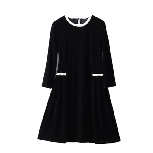 ERFMFKL Velours noir robe drapée avec col rond et plis pincé...