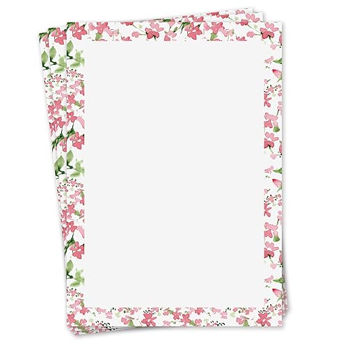 Papier lettres fleurs roses 50 feuilles DIN A4 rose rouge