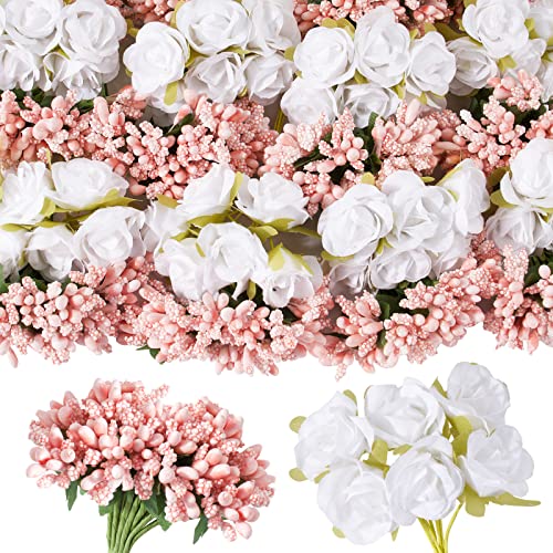 Package inclus: 60pcs roses fleurs artificielles blanc +144p...