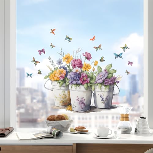 Tanlaby Fleurs Colorées Autocollants Fenetre Printemps Fleur...