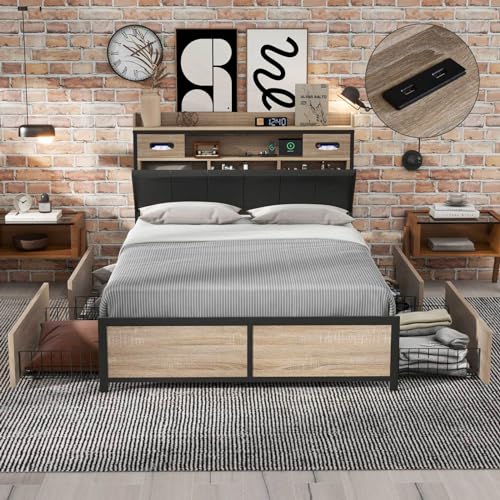 POYHKFD métal 140 x 200 cm interface USB, tête de lit et som...