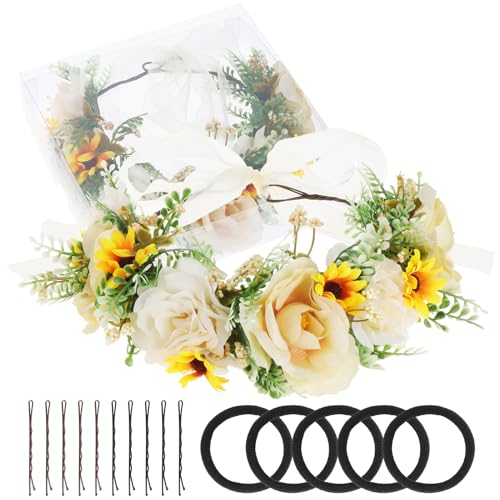 TsunNee Couronne florale réglable, couronne de fleurs bohème...
