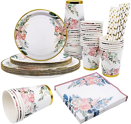INHEMING Vaisselle Florale Carton Jetable Anniversaire 80 Pi...