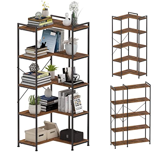 VEDECASA Bibliothèque d''angle à 5 étagères, grande étagère...