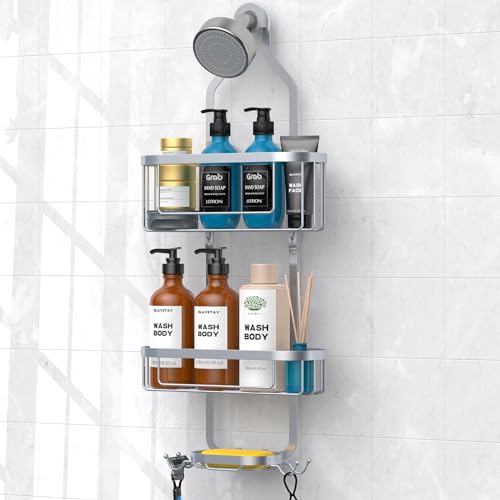 Panier de douche suspendu avec crochets pour serviettes, sav...