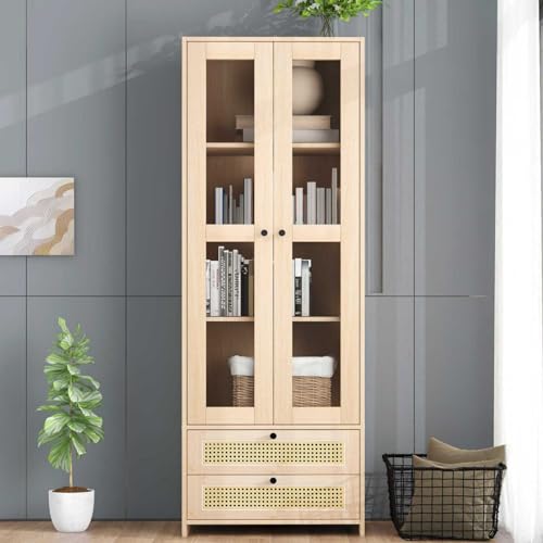 KOMH Buffet polyvalent avec tiroirs rotin et armoire