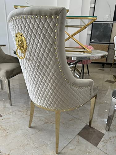 Chez bador Chesterfield Baroque Velours Beige Doré Acier Ino...