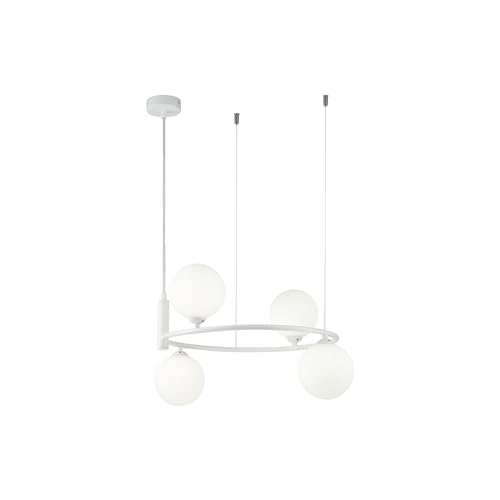 Lustre Suspension Exquis 4amp G9, bol blanc, plafonniers bla...