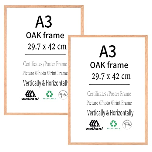 Weikani Lot de 2 cadres photo A3 en chêne - 29,7 x 42 cm - C...