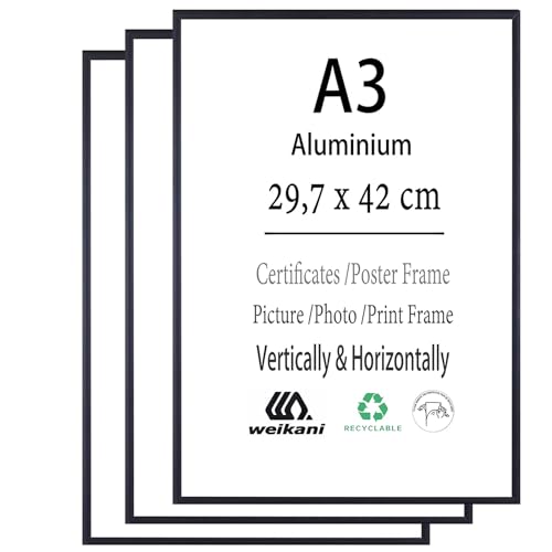 LYYYYX Lot de 3 cadres photo, format A3, en aluminium, noirs...