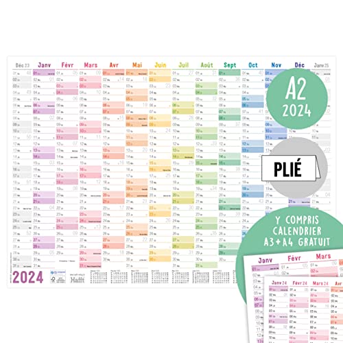 Calendrier mural 2024 A2 en français 59 x 42 cm plié pour 14...