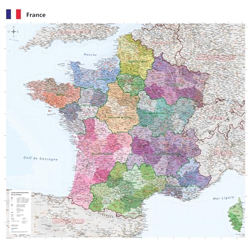 GeoMetro Carte administrative de la France en français de 10...