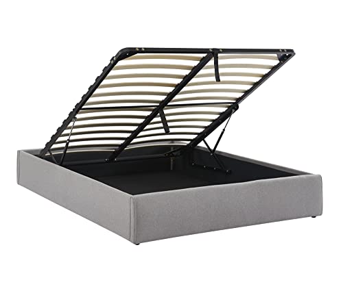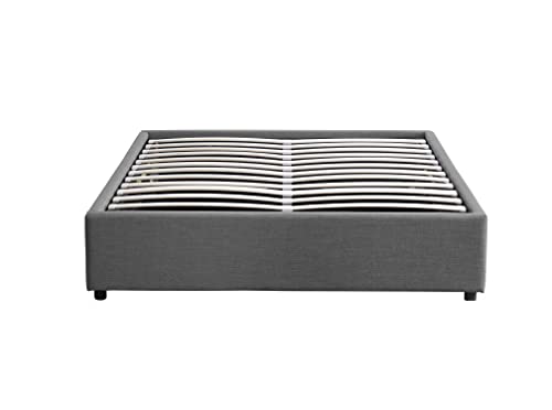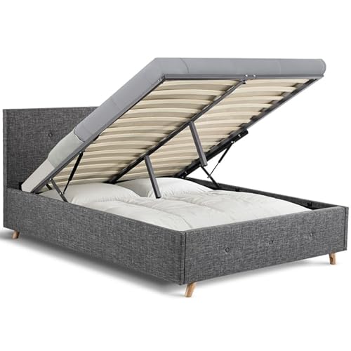 LOUNGITUDE Cadre Lit Coffre Sommier Inclus Tissu Gris foncé...