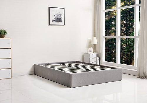 BAÏTA Lit Coffre Sakura Tissu Gris chiné sommier 140x190 Inc...