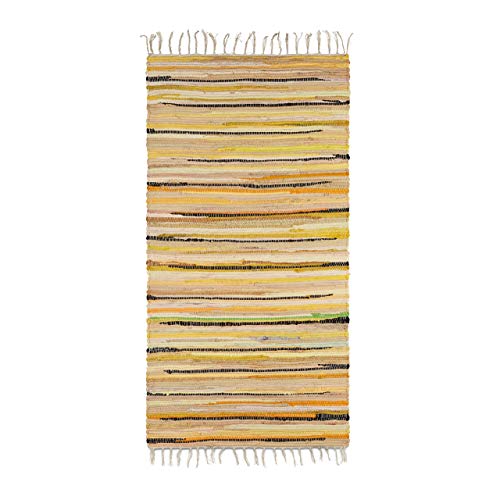 Relaxdays Tapis à franges tissé main coloré jaune style indi...