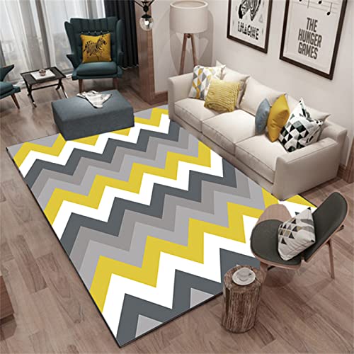 Tapis Coloré Rayures Incurvées Gris Jaune Anti-acariens Écol...