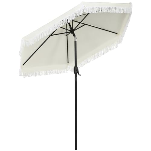 Outsunny parasol droit extérieur inclinable à franges manive...
