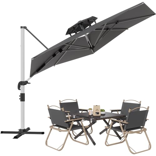 GOPLUS Parasol de Jardin Exterieur, Parasol Déporté Carré 3x...