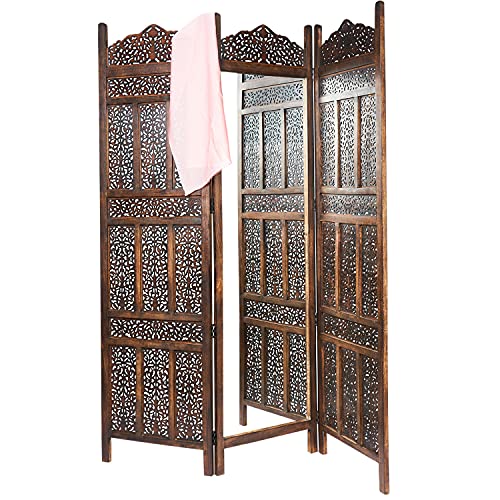 Elroi Paravent oriental en bois avec miroir Marron 150 x 180...