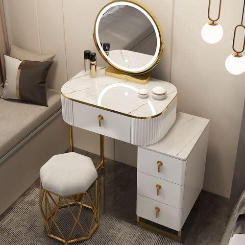 Ensemble maquillage coulissant miroir bureau avec 6 tiroirs...