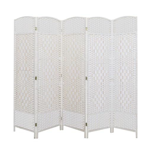 LW Collection Paravent Rotin Blanc - Paravent 5 Panneaux - S...