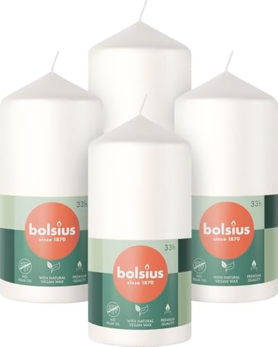 Bolsius Lot de 4 bougies piliers - Blanc - 12 x 6 cm - Bougi...