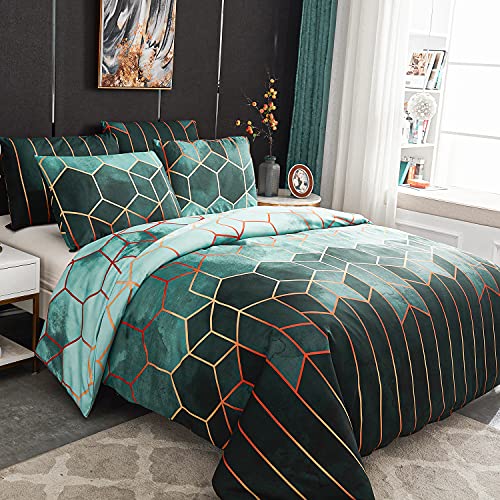Xiongfeng Parure de Lit Réversible Vert Géométrique Microfib...