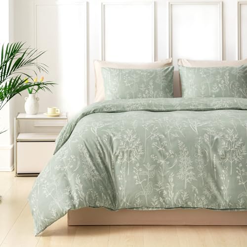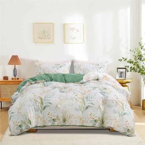 Freyamy Housse Couette 140x200 Vert Blanc Floral Parure de l...