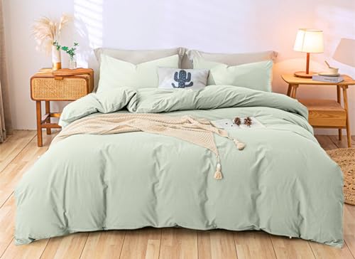 HSOYGE Parure de lit vert scandinave unie, Queen Size, tissu...