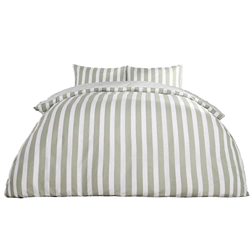 Réversible parure de lit rayures polycoton doux vert sauge s...