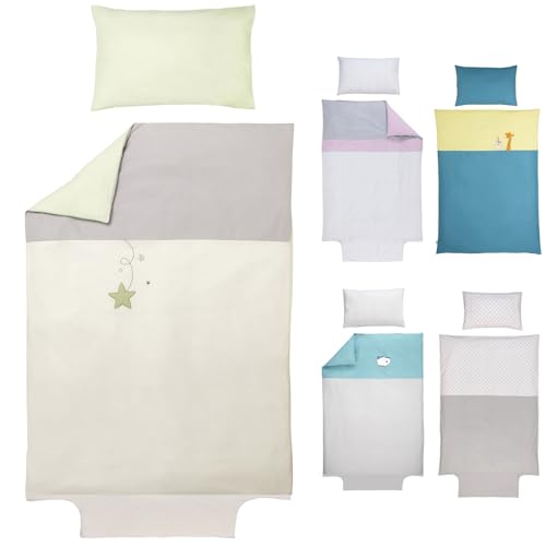 Parure de lit bébé brodée, élastiques et taie d'oreiller