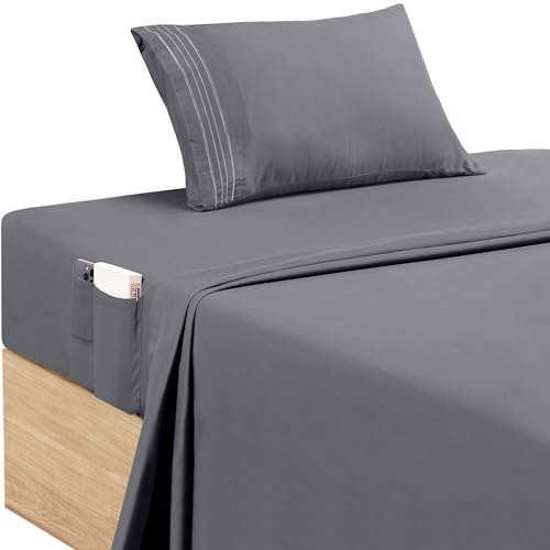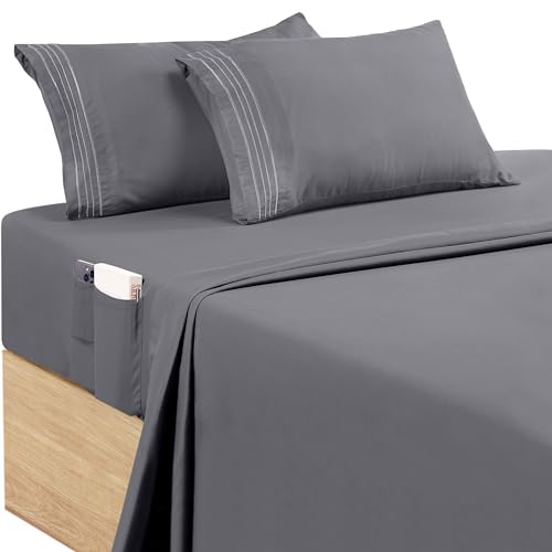 Utopia Bedding Parure de Lit Brodée 4 Pièces Gris