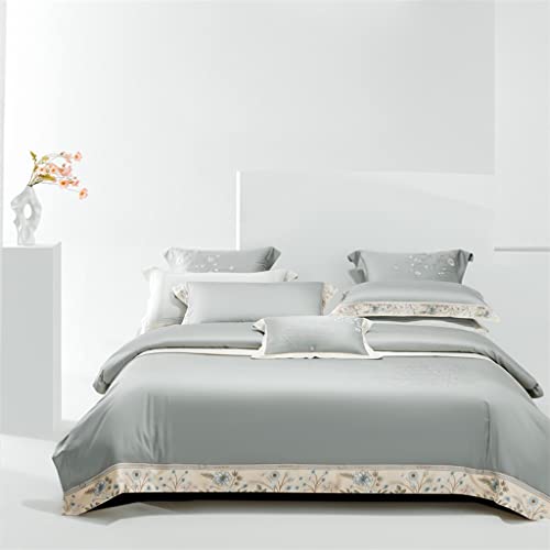 Parure de lit Soie Double, Housse Couette Brodée, Taie d'Ore...