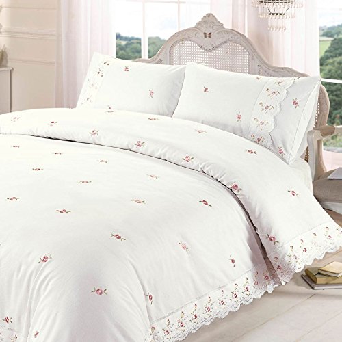 ROTIN Parure de lit dentelle brodée 4 pièces Kit d'articles...