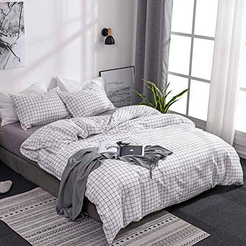 Parure de lit Damier microfibre 220x240 cm, blanc, noir, mar...