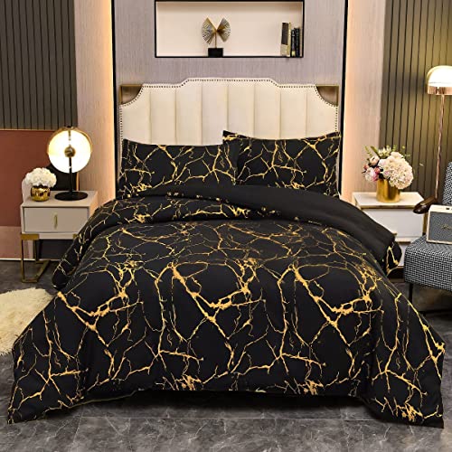 Luofanfei Housse Couette 220x240 Marbre Noir Doré Parure de...
