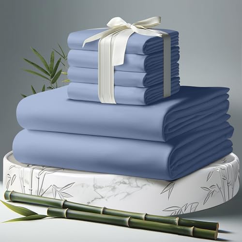 DECOURE Parure de lit 6 pièces Viscose Bambou Doux Luxe Poch...