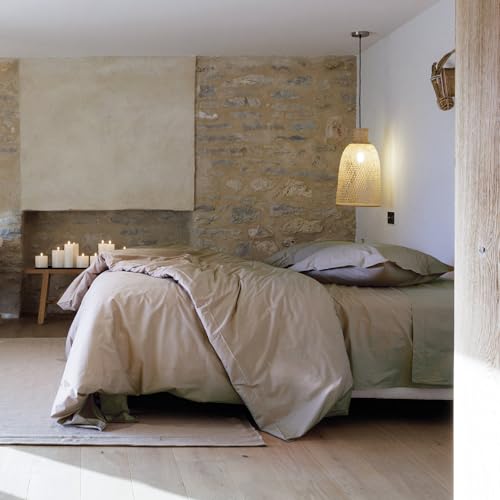 Parure de lit 300x240 cm percale 100% coton Gaby Beige 3 piè...