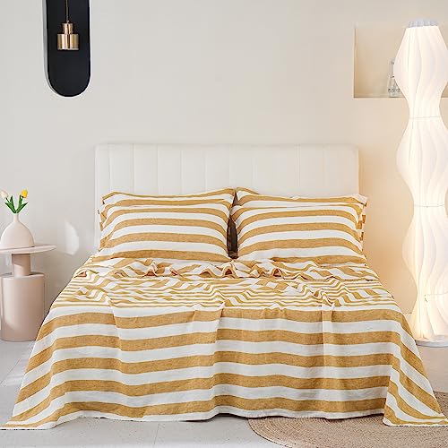 Sévité symbole Parure de lit 4 pièces 100 % lin rayures jaun...
