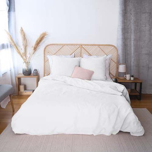Parure de lit unie LINO blanc composée d''une housse de coue...
