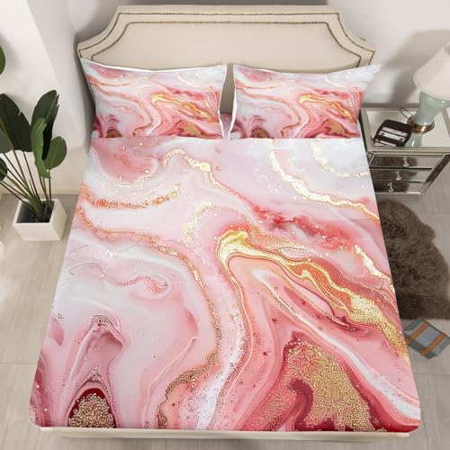 Drap-housse marbre rose pastel doré à paillettes parure de l...