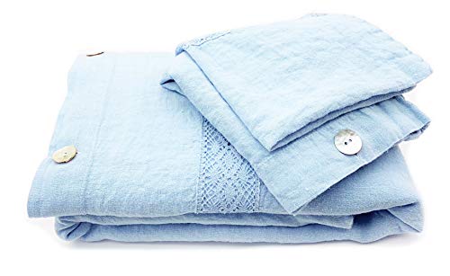 JOWOLLINA Parure de lit en lin délavé bleu pastel 155x220cm...