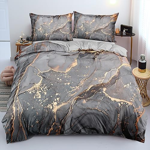 Luofanfei Housse Couette 220x240 Marbre Noir Doré Parure de...