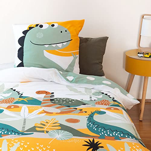 Cointeco Parure de lit Enfant Réversible Dinosaures Préhisto...