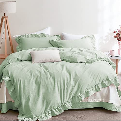 Lanqinglv Housse de Couette 240x260 cm Vert à Volants Romant...