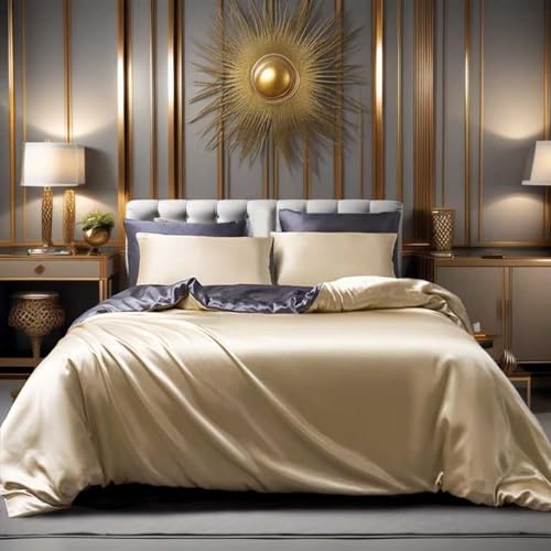 Gezu Housse de Couette Satin Or Beige Gris Foncé Unie Double...