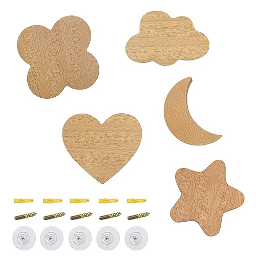 Shengyi 5 Pièces Crochet Mural Bois Patère Douce Élégante 5...