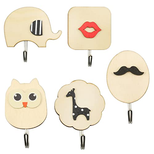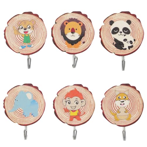 6 Pièces jolis crochets en bois, chaque patère a un motif de...