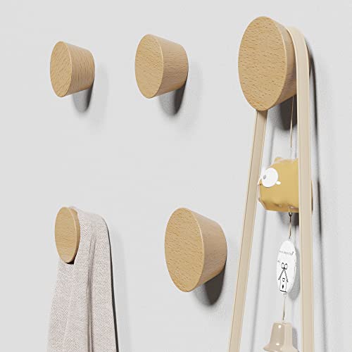 COLAND Lot de 5 Patère Murale Bois, Naturel Porte Manteau Mu...