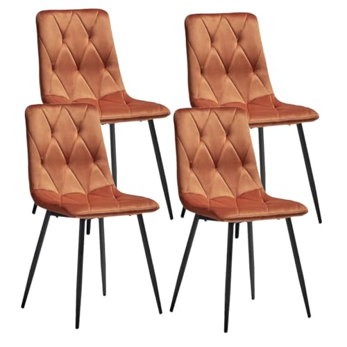 Lot de 4 Chaises Capitonnées Orange Pieds Bois de la gamme C...